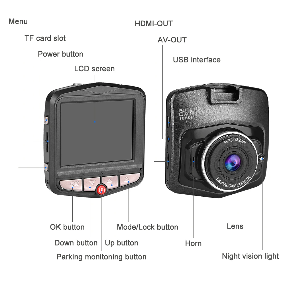 TOP Mini Train Recorder High Definition Night Vision 1080p Wide Angle Hidden Car DVR Vehicle 2.4" Suppo