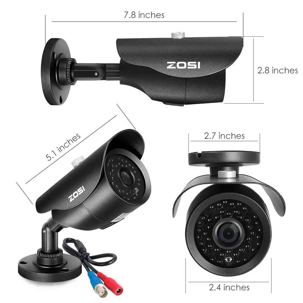 ZOSI 4CH 1080P HD-TVI Security Camera CCTV System P2P IR Night Vision 4PCS 2.0MP Outdoor HD Camera
