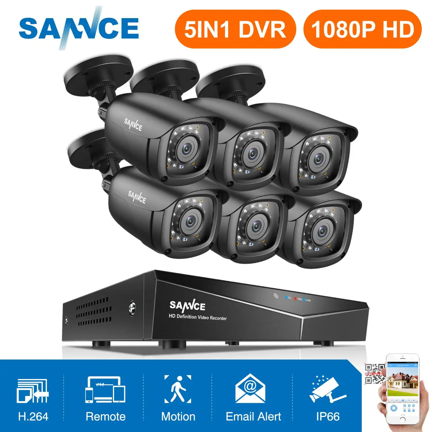 SANNCE 8CH 1080P HDMI Output CCTV System 6PCS 1080P TVI Home Security CCTV Cameras Waterproof IR Ni