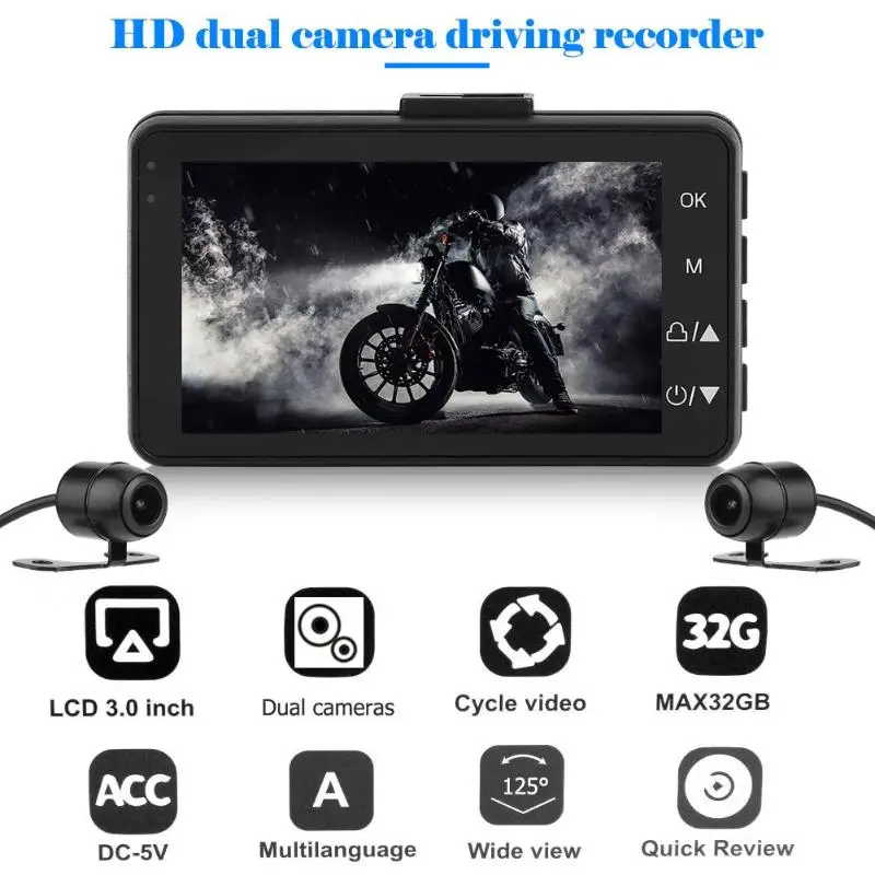 BEST QUALITY Motorcycle DVR Dash Cam 3 inch 1080*720 120 Degree Lens LCD Display Front+ Rear View Camera Recorde