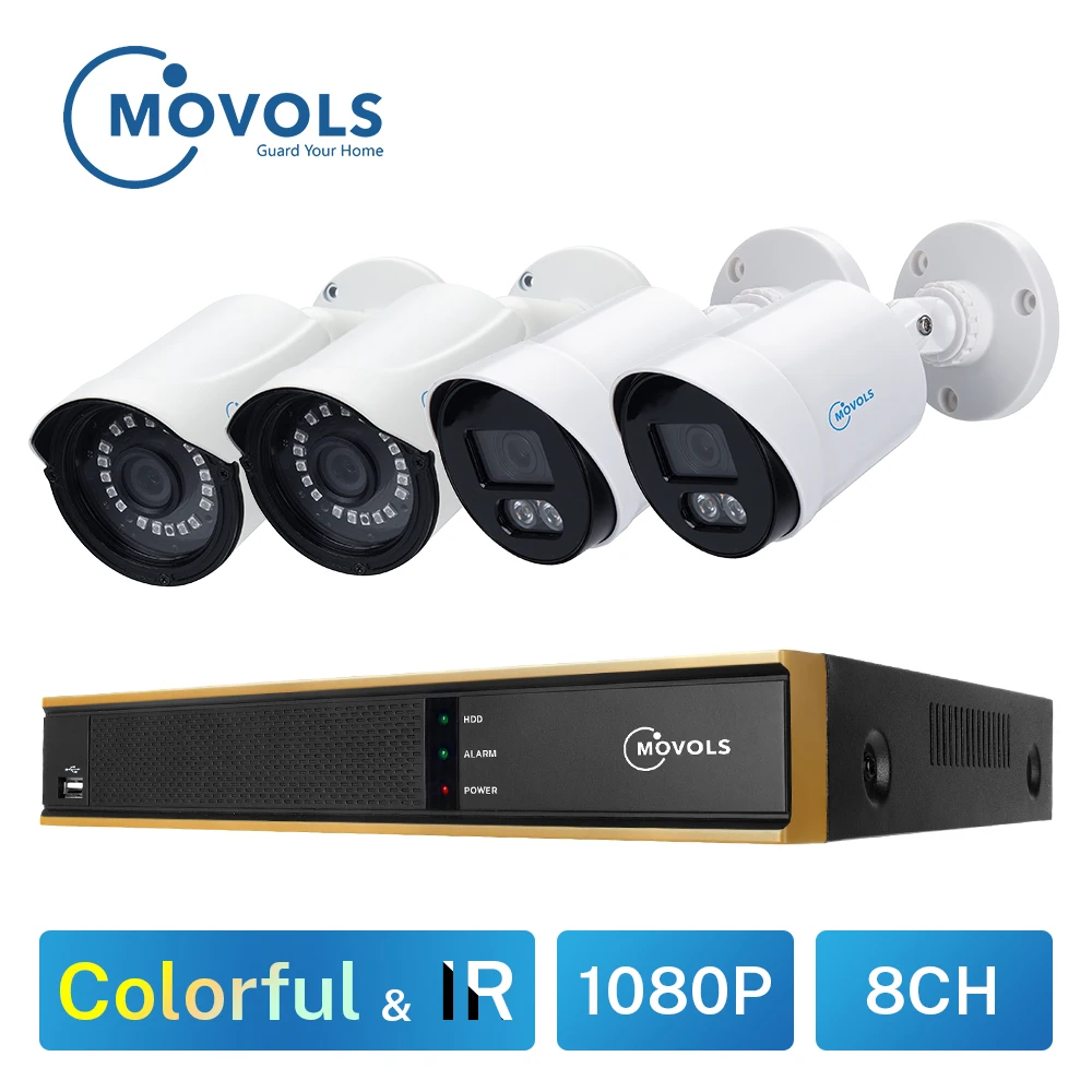 Movols 1080P Colorful&IR Night Vision Video Surveillance Kit Outdoor/Indoor Waterproof Security Cam