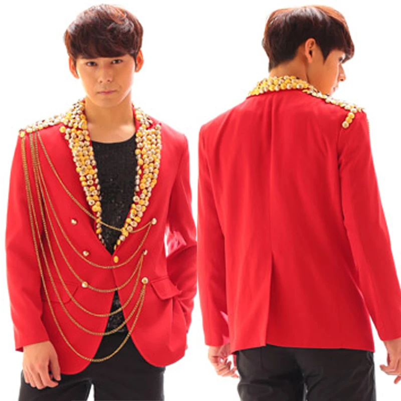 Jazz Dance Costumes British Red Suit Jacket Clothing Night Club Coat Hip Hop Clothes Male Singer St