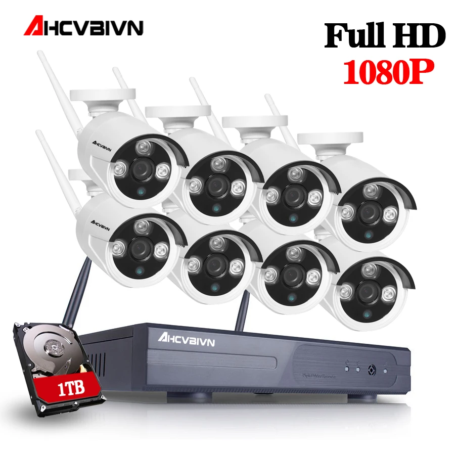 AHCVBIVN 8CH 1080P NVR WIFI Surveillance Kit Plug AndPlay 1080P HD 2.0MP Wireless Waterproof Night